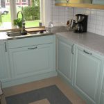I detta kök har kunden valt att göra höskåpet med ugn och micro i samma höjd som kyl och frys. Samt en fin sittplats under fönstret.